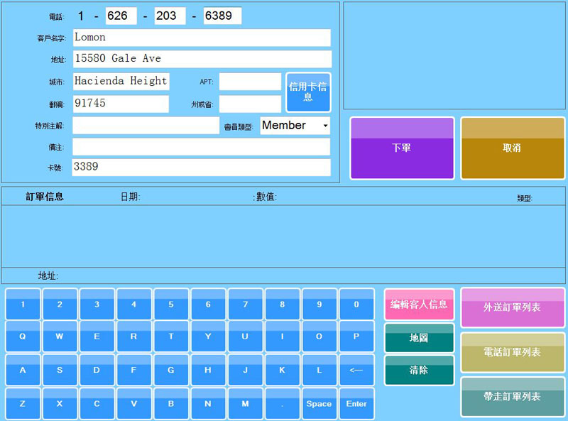 29. 信用卡手工刷卡: 打开订单,点付款,把“卡是否存在”,下拉选择No, 点VISA, 输入过期日,比如1115, 表示11月2015年卡过期,再输入卡号,按"Enter"。