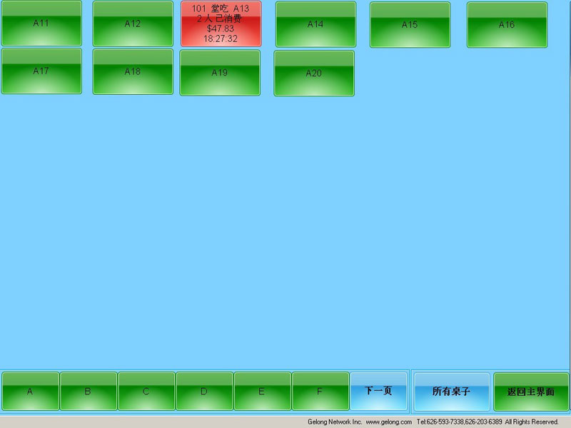 8.红色餐桌。表示已经开台,点入可以修改菜,加菜,买单打印帐单,付款等